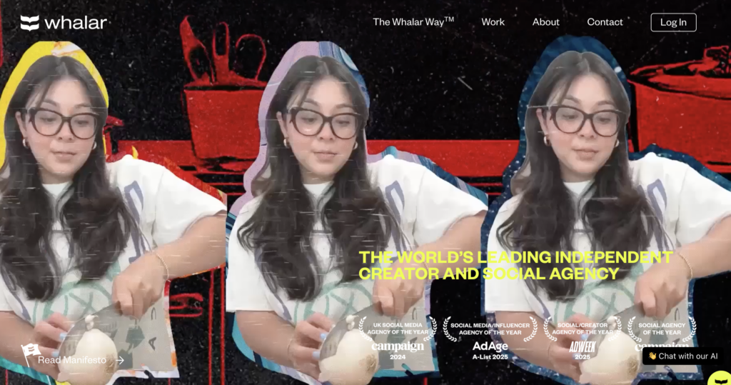 Whalar is a full‑service creator and social agency that helps brands unlock the power of authentic creator partnerships and culturally resonant content. Originally built as an influencer marketing agency, Whalar has expanded into a broader ecosystem while maintaining deep expertise in influencer strategy, execution, and measurement. With offices in New York and other global hubs, they combine creative storytelling, data‑informed campaign planning, and direct access to creator communities to help brands drive engagement and business outcomes.