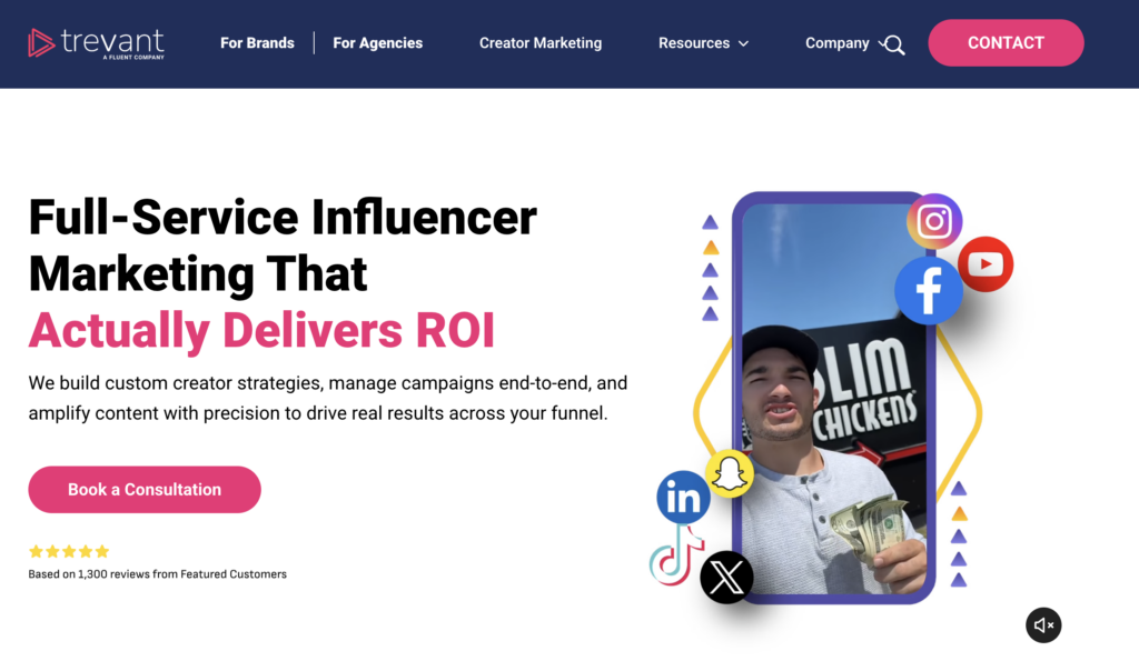 Trevant is a growth‑oriented full-service influencer marketing agency that helps brands transform influencer programs from experimental to performing, predictable business channels. Backed by exclusive platform partnerships across major platforms (Meta, TikTok, and MNTN CTV) and a legacy in performance marketing, Trevant blends creator strategy with paid amplification and measurable performance frameworks to drive real ROI and influence for brands at scale.