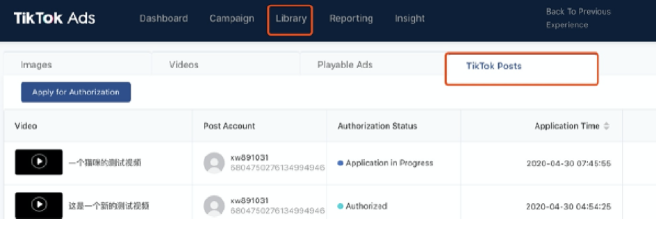 Once you’ve initiated authorization as outlined above, you can now track the authorization status in the TikTok Posts tab.