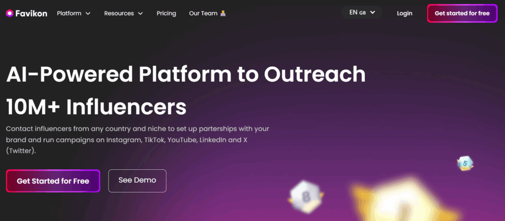 Favikon is an AI-powered influencer outreach tool that connects brands with over 10 million influencers across Instagram, YouTube, TikTok, LinkedIn, and X (Twitter). It enables you to send tailored outreach messages at scale, manage replies effortlessly, and streamline your influencer marketing campaigns – all within one platform.